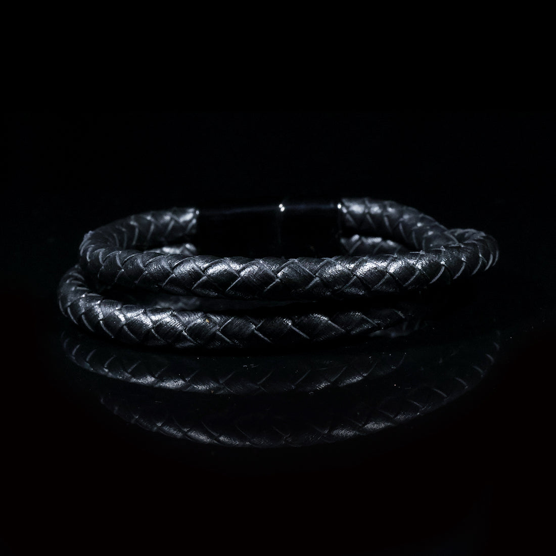 All-Black Braided Leather Bracelet – Timeless Power