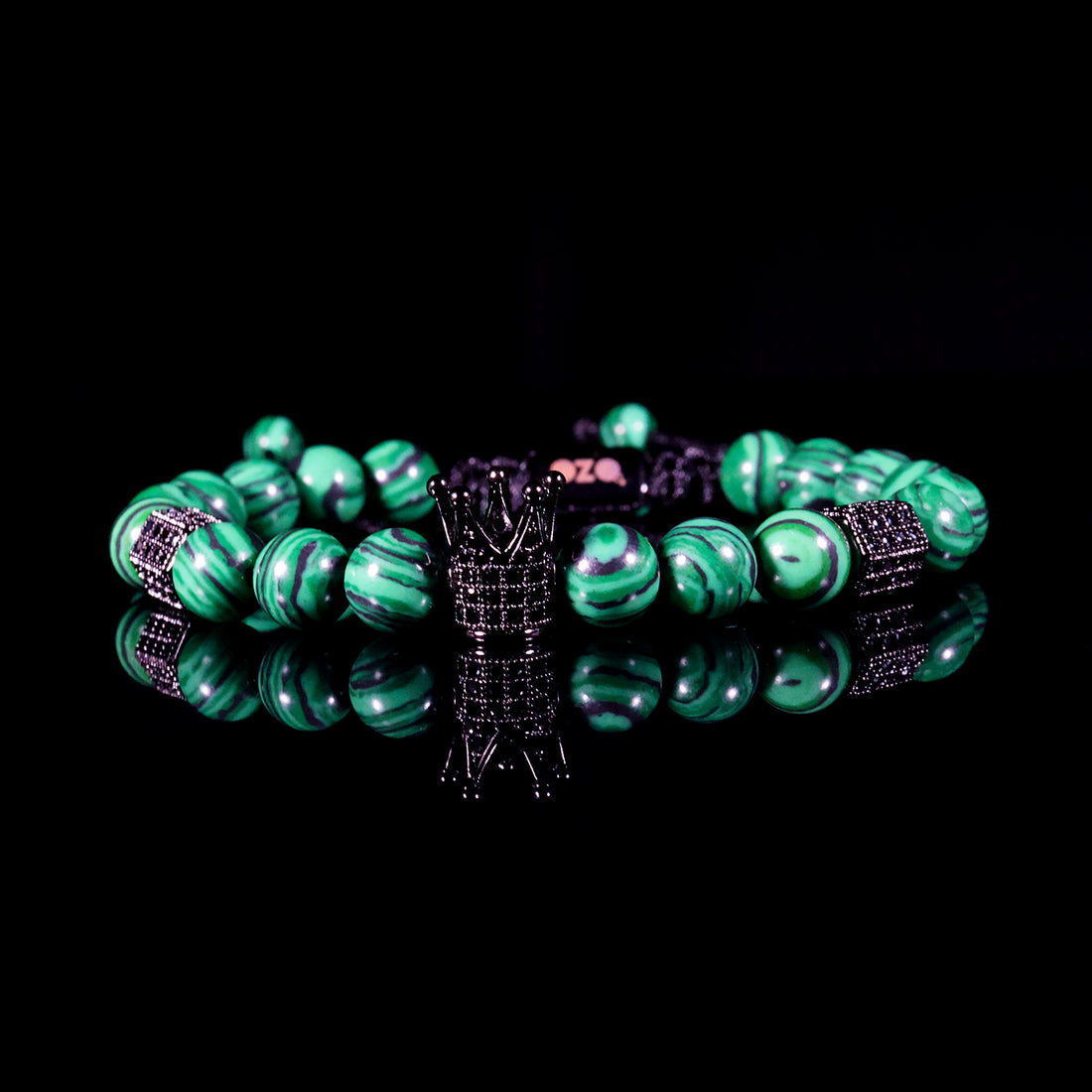 Crown Green Striped Stone Bracelet