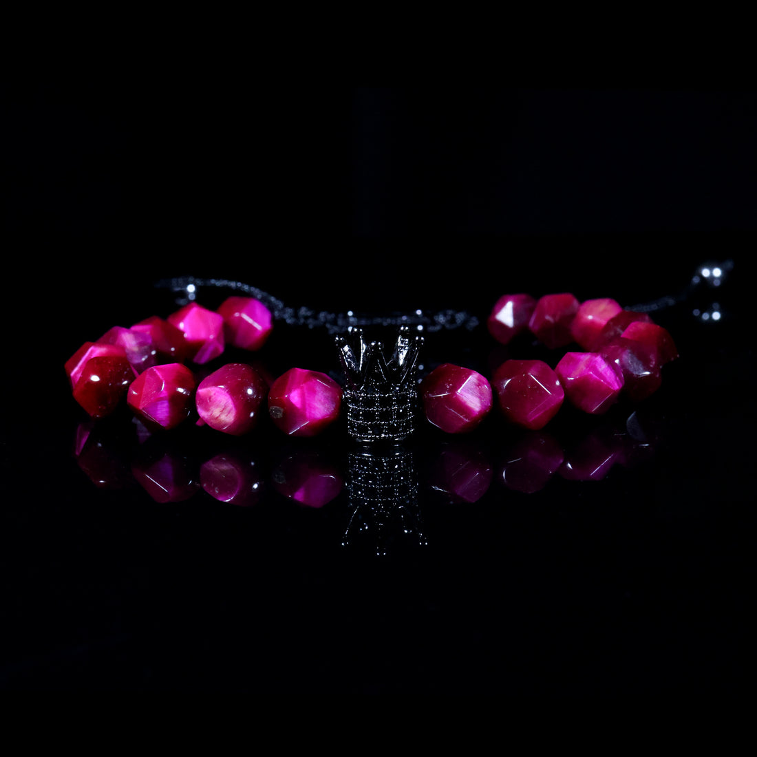 Crown Diamond-Cut Black Stone Bracelet