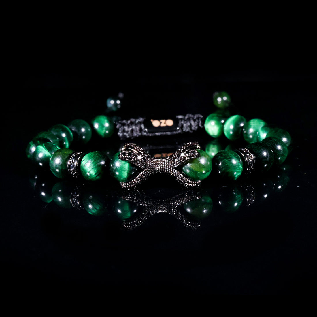 OZO Square Green Tiger Eye & Onyx Macramé Bracelet