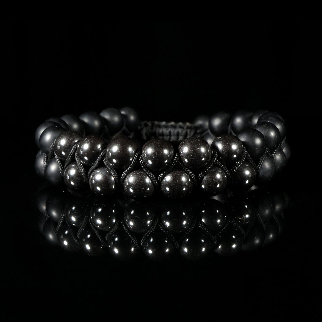 Obsidian Shield Bracelet – Double-Layer Woven Black Stone Edition