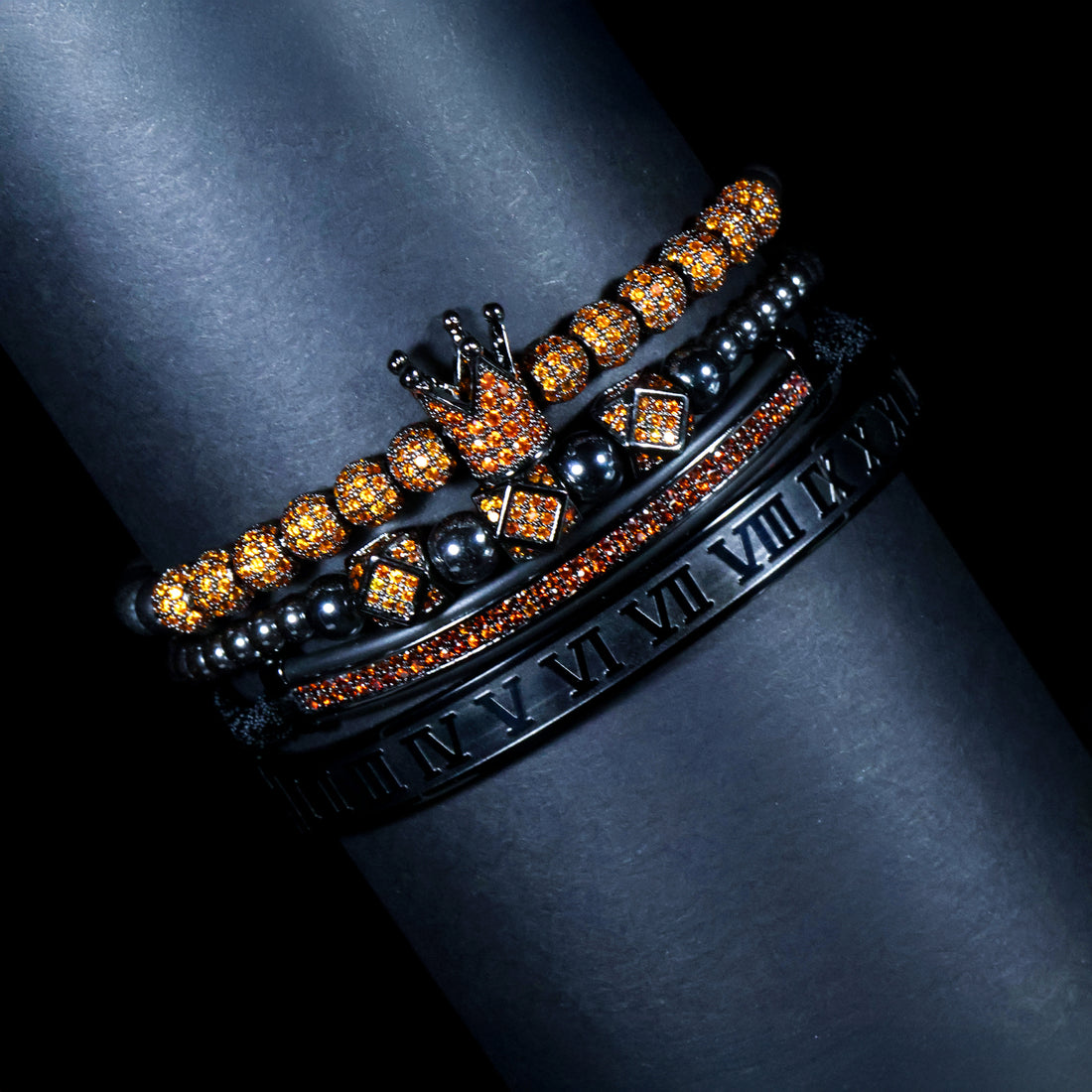 Imperial Amber Crown Bracelet Set – Elite Men’s Luxury Stack