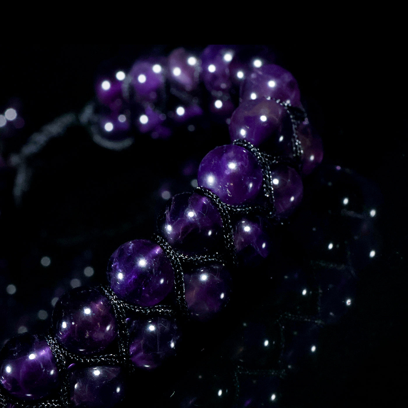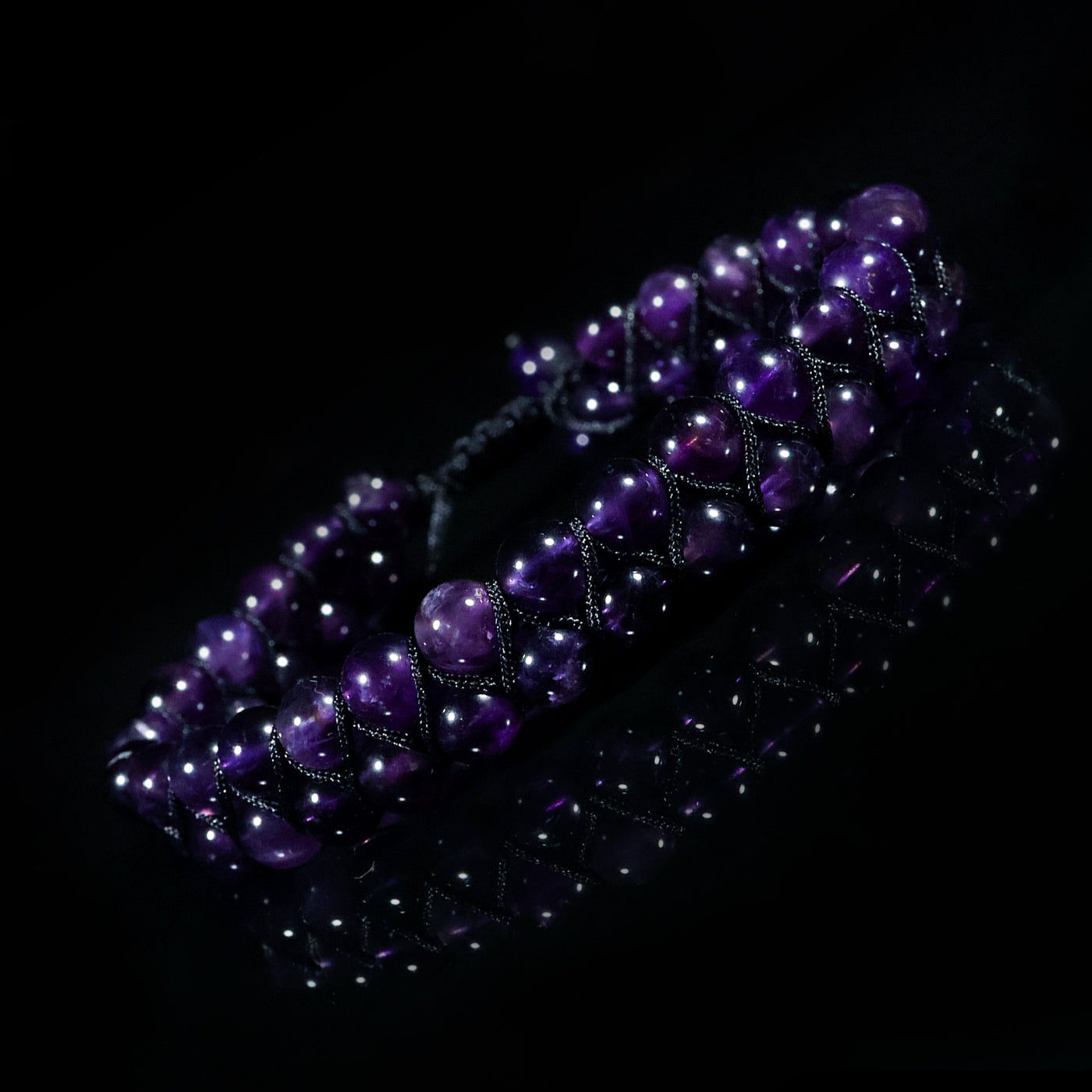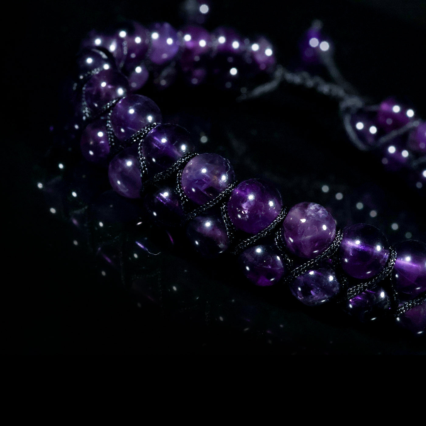 The Amethyst Noir Macramé Bracelet is crafted for those who value depth and presence. Featuring rich, deep-purple natural stones with subtle luminous highlights, this piece reflects quiet confidence and refined strength. Each bead carries its own natural character, creating a bracelet that is as individual as the one who wears it.