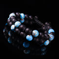 The vibrant blue turquoise stones bring a refreshing contrast—symbolizing protection, inner calm, and clarity—while the matte black beads add strength, depth, and masculine elegance. Handwoven using premium macrame techniques, the dual-layer design ensures durability, comfort, and an elevated visual texture that stands out on any wrist.