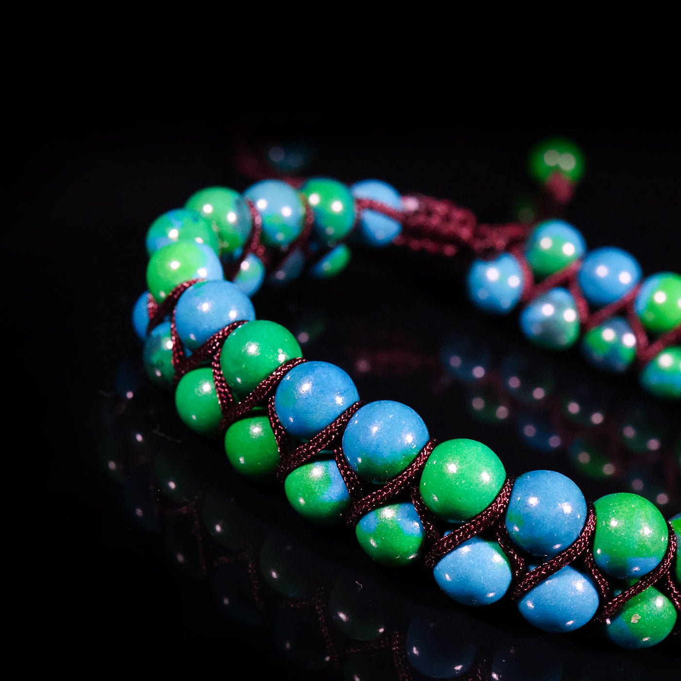 The Azure Verde Balance Bracelet blends vibrant blue and rich green tones in a striking, handcrafted macramé design. Made with polished natural stone beads, this bracelet captures the meeting point of sky and earth — calm yet full of life.