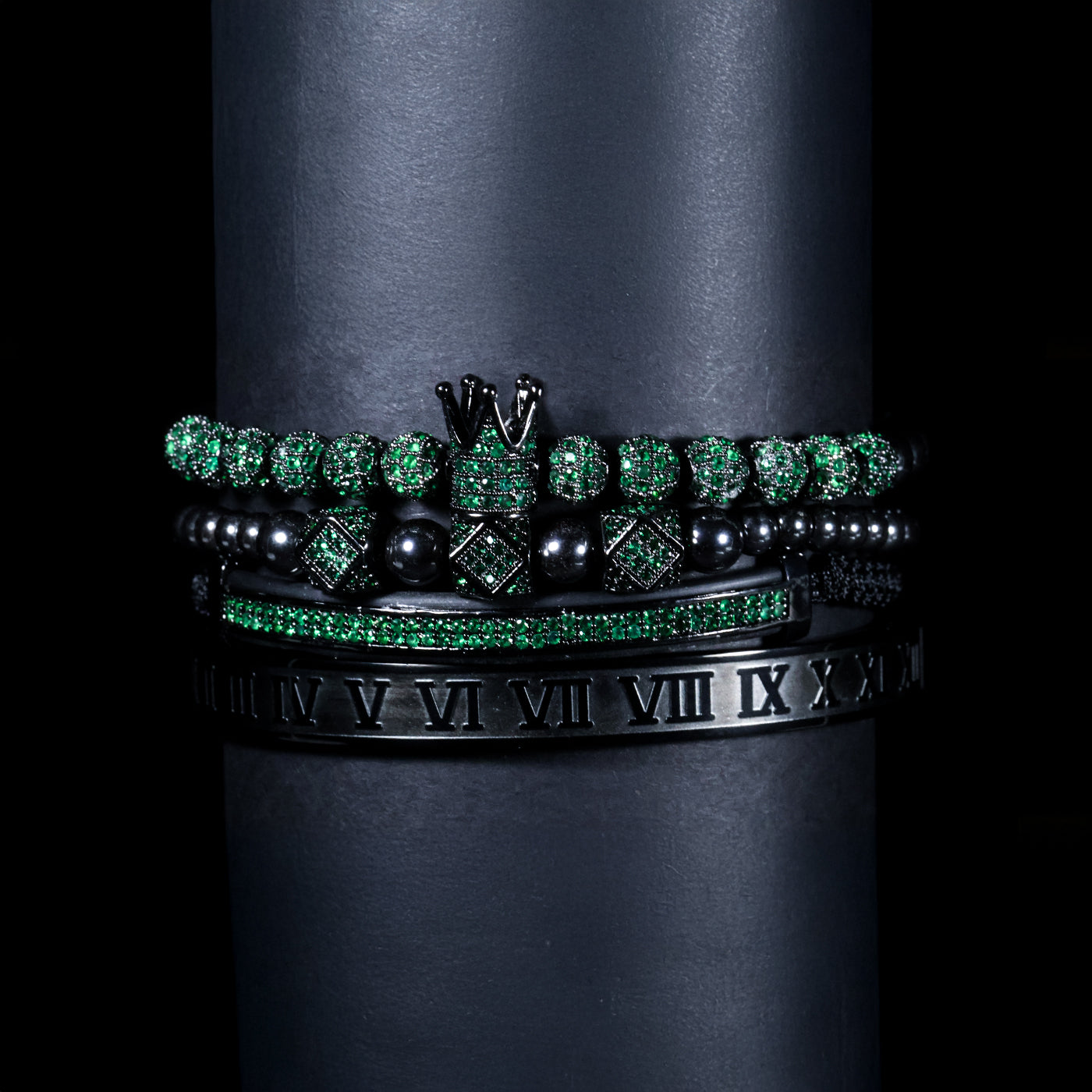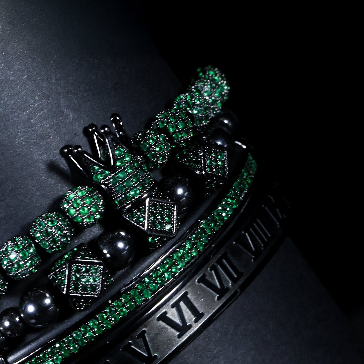 Emerald Royal Crown Bracelet Set – Luxury Men’s Signature Stack