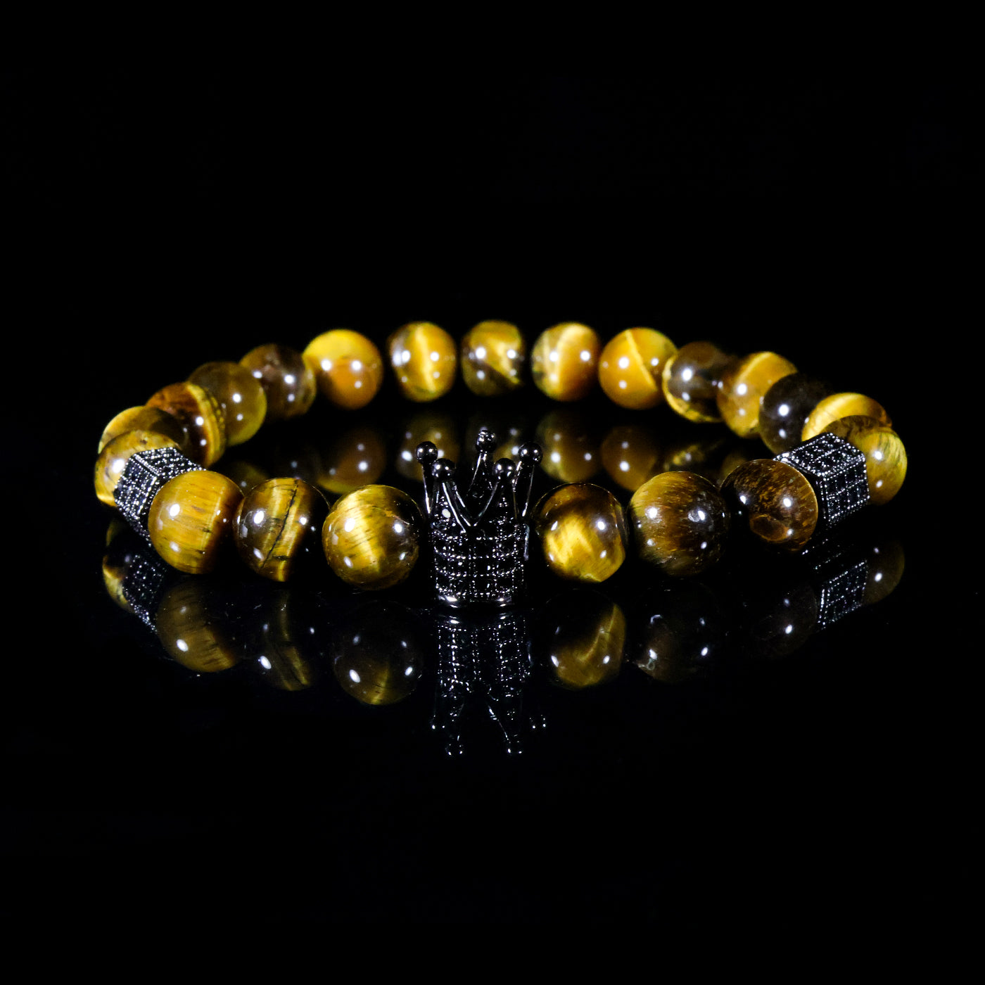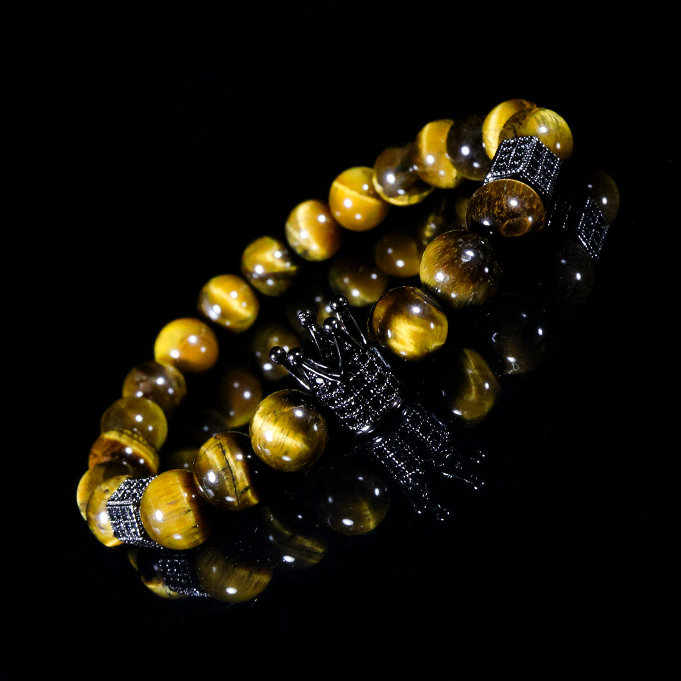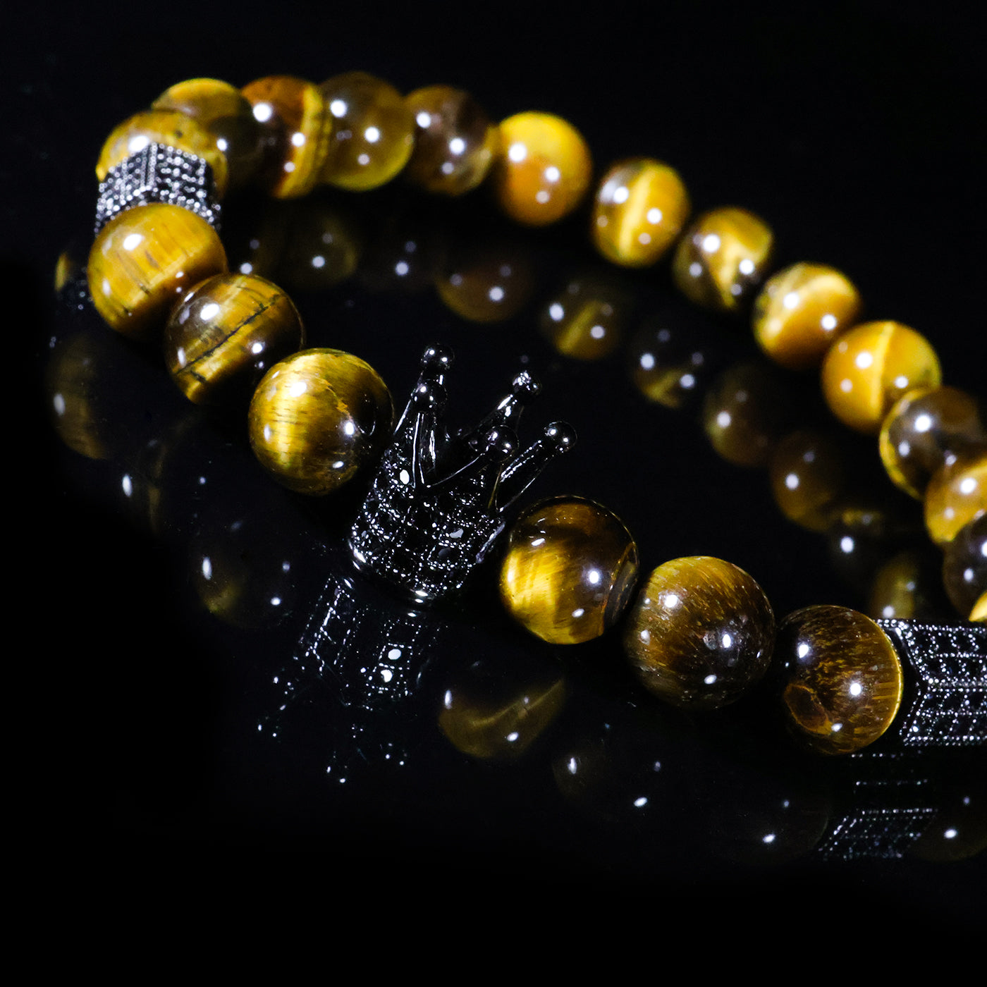 Command presence and confidence with the Golden Tiger Crown Bracelet, a powerful accessory crafted from genuine natural tiger eye stones. Known for their rich golden-brown shimmer and protective energy, these stones create a dynamic, glowing effect that shifts beautifully under light.