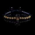 Set against matte black accents and polished metallic elements, each bead is hand-finished to deliver maximum brilliance. The bracelet’s adjustable cord ensures a perfect, comfortable fit—making it ideal for both everyday wear and special occasions.