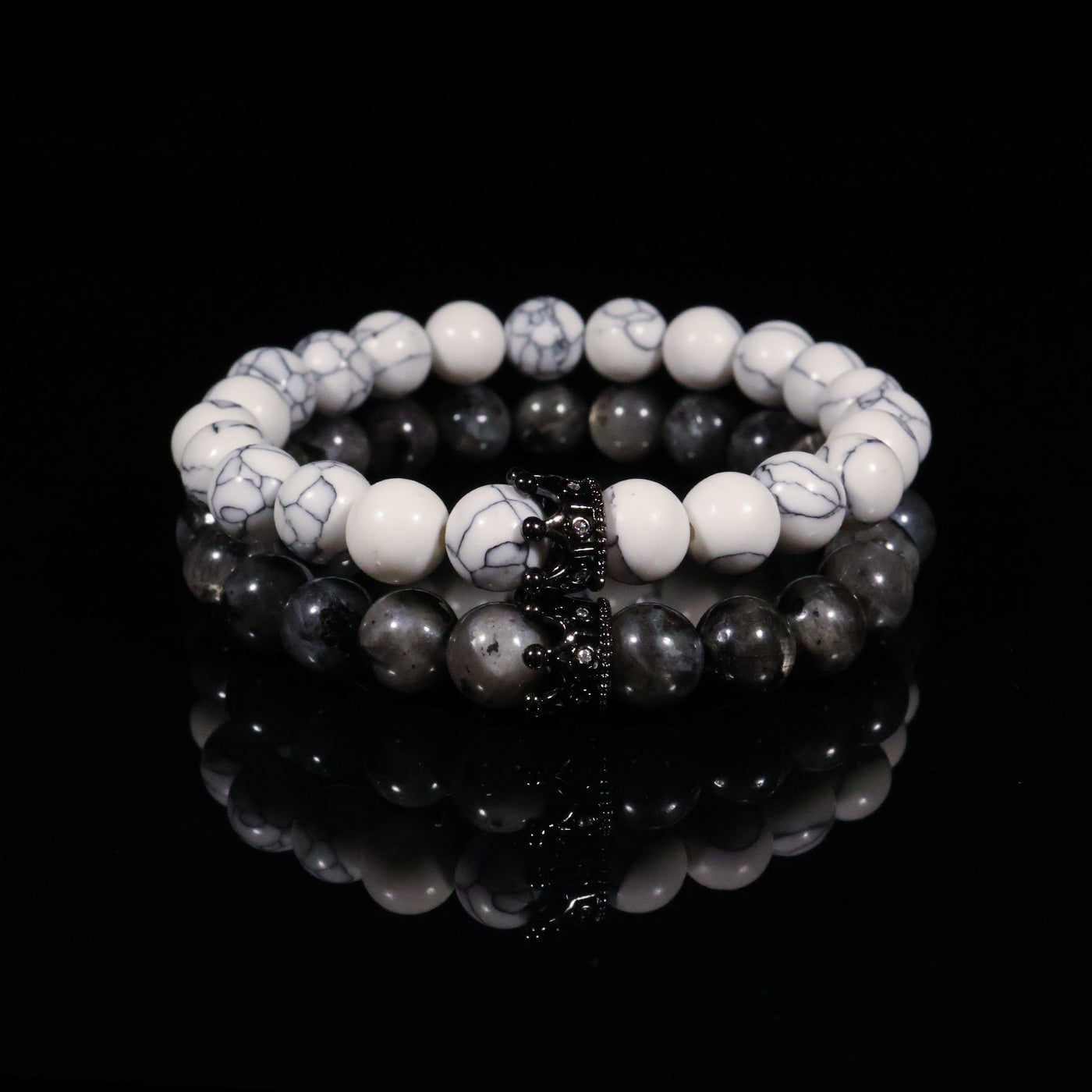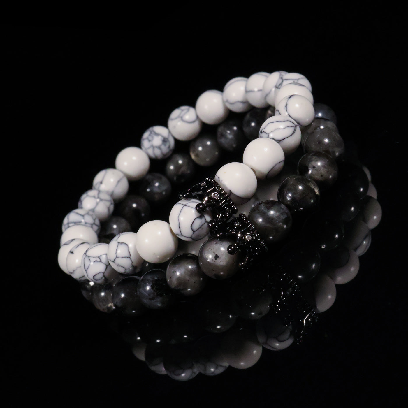 Marble Crown Duo Bracelet Set – White Howlite & Grey Stone Edition