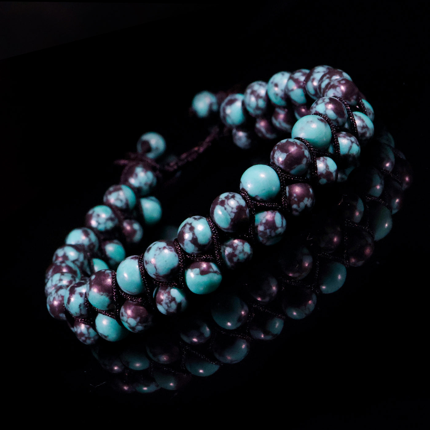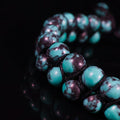 The Midnight Turquoise Fusion Bracelet is a striking blend of cool turquoise tones and deep plum marbling, woven together in a refined macramé design. Crafted with genuine natural stones, each bead carries organic veining and contrast, making every bracelet truly one of a kind.