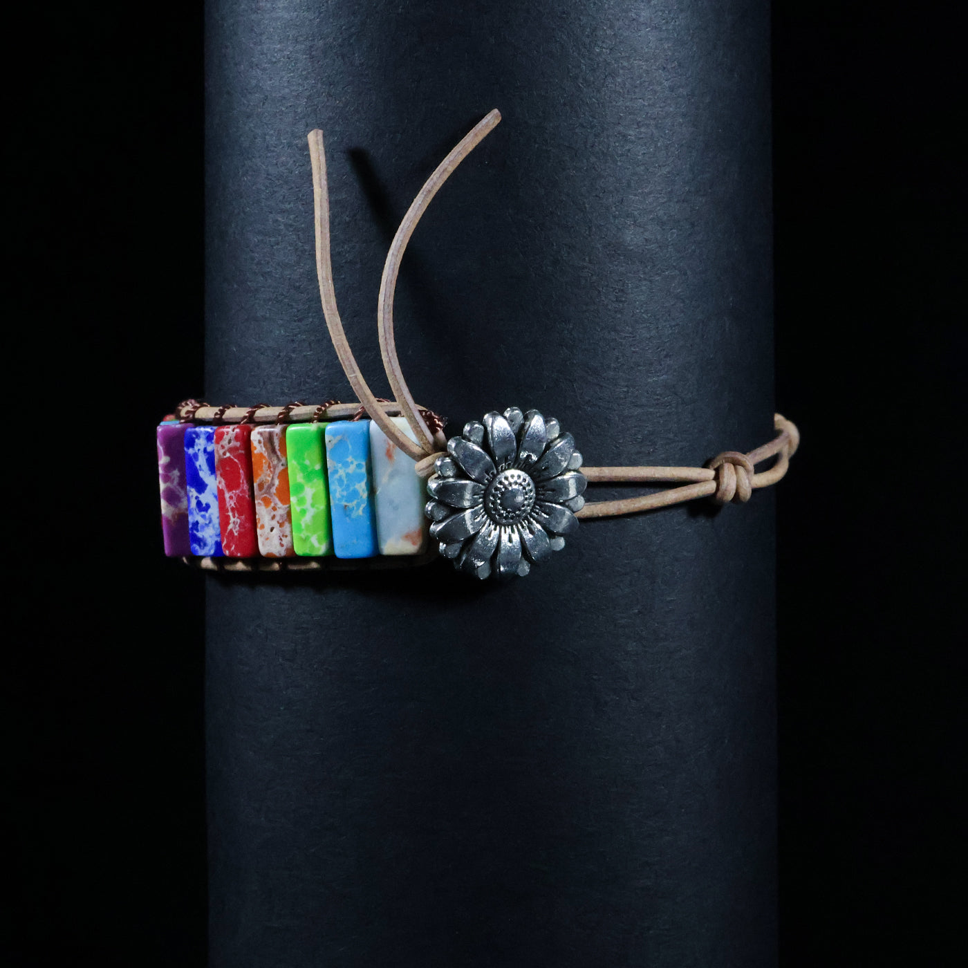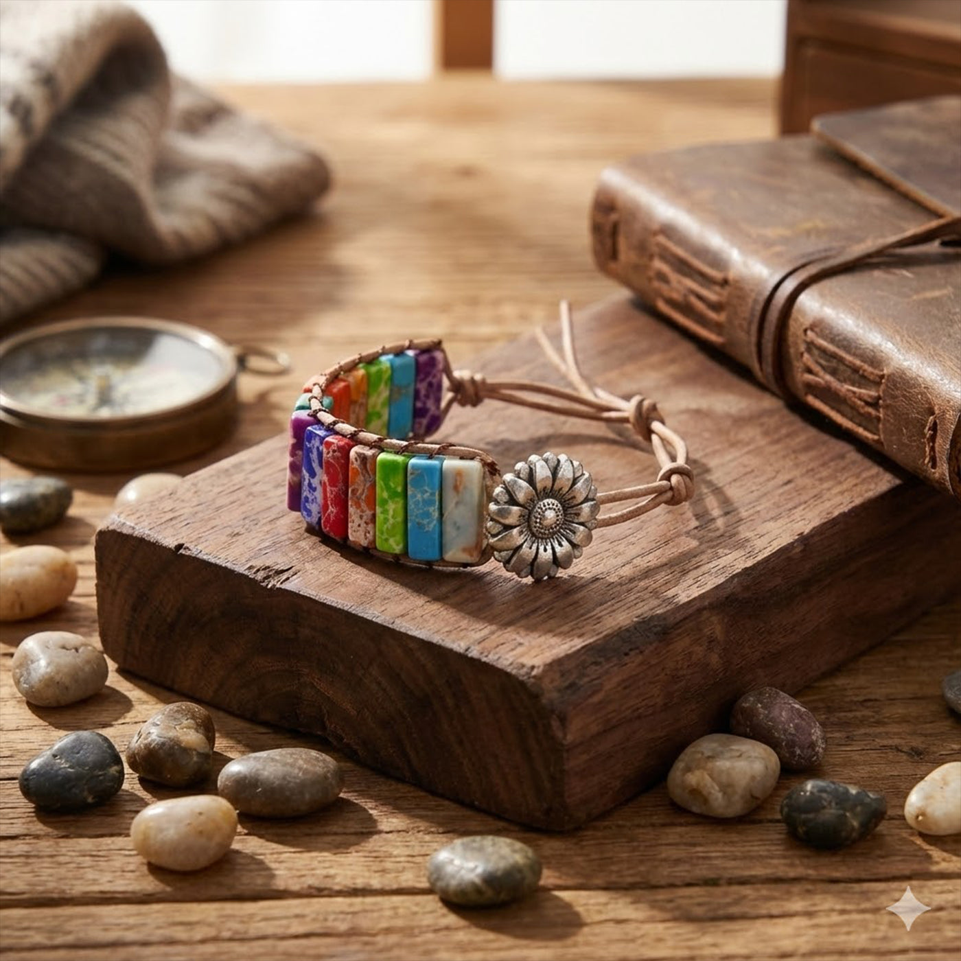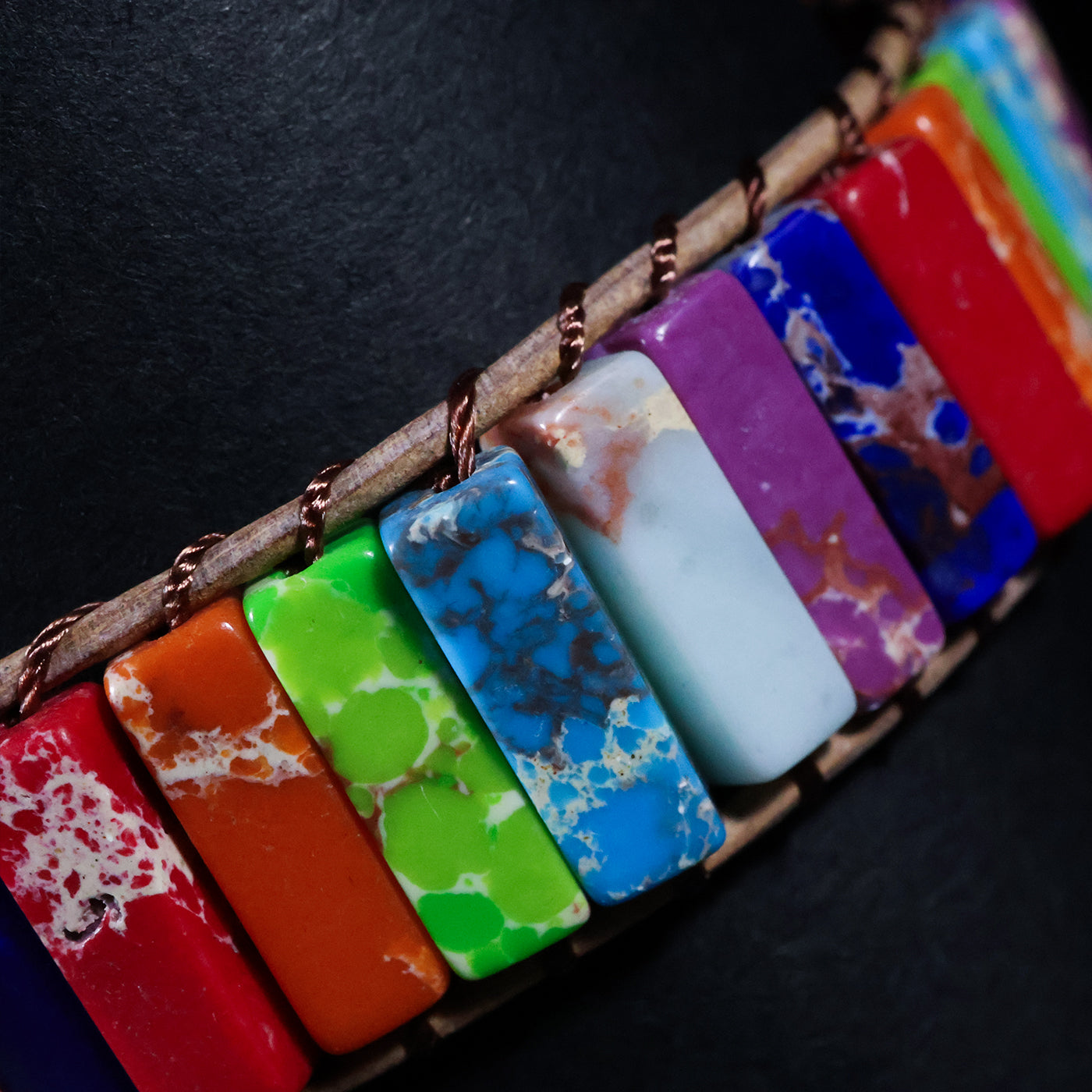 Each stone carries its own unique texture and tone, symbolizing creativity, positivity, and self-expression. The sleek silhouette and comfortable fit make it perfect for everyday wear or as a standout accent for special occasions.