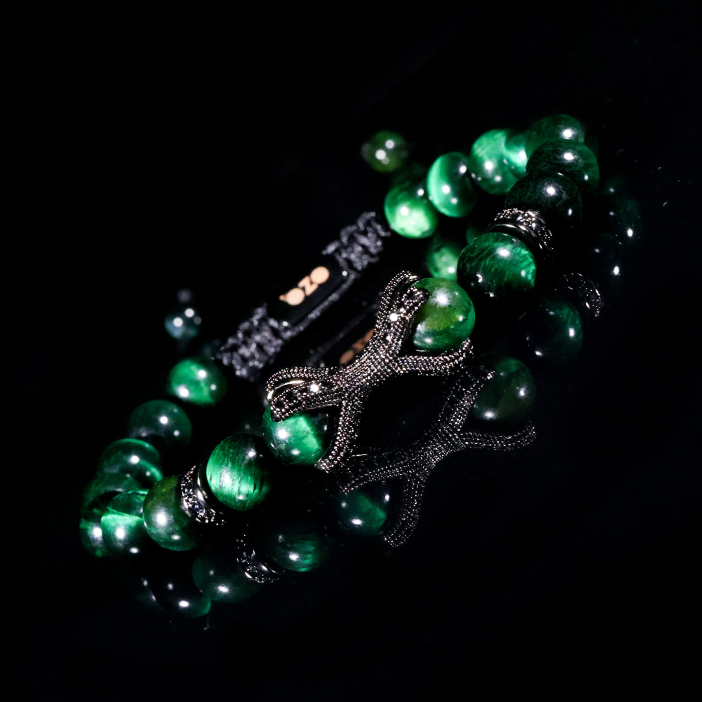 Striking symmetry meets natural power in the OZO X Emerald Green Stone Bracelet. Crafted with rich emerald-green natural stones, each bead carries depth, energy, and individuality—no two stones are ever exactly alike.